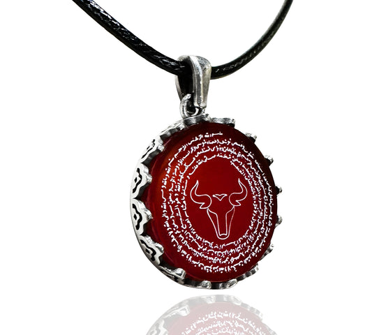 Boğa Burcu Duası Kolyesi (925 Ayar Gümüş – Akik Taşı)